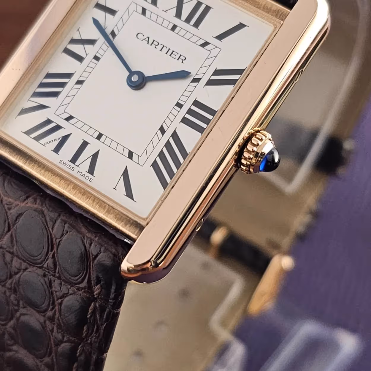 Elegant, understated, and unmistakably Cartier—the Tank Solo W5200025 continues the legacy of one of the most iconic watch designs of all time. Inspired by Louis Cartier’s original 1917 Tank, this modern reinterpretation offers a clean and timeless look that suits both everyday wear and formal occasions. This 2019 model features a polished stainless steel case measuring 31mm x 24.4mm, paired with a classic silvered opaline dial, bold Roman numerals, and blued-steel hands. Powered by a reliable quartz movement, it delivers precision and ease of use, ideal for those who appreciate refined simplicity.