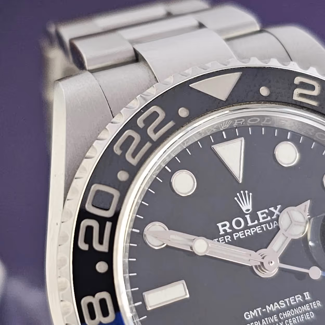 The Rolex GMT-Master II 126710BLNR is a modern classic, instantly recognizable for its blue and black Cerachrom bezel—earning it the nickname “Batman.” This reference, introduced in 2019, features a 40mm Oystersteel case, a black dial with luminous markers, and the updated Calibre 3285 movement with a 70-hour power reserve and refined time zone functionality.