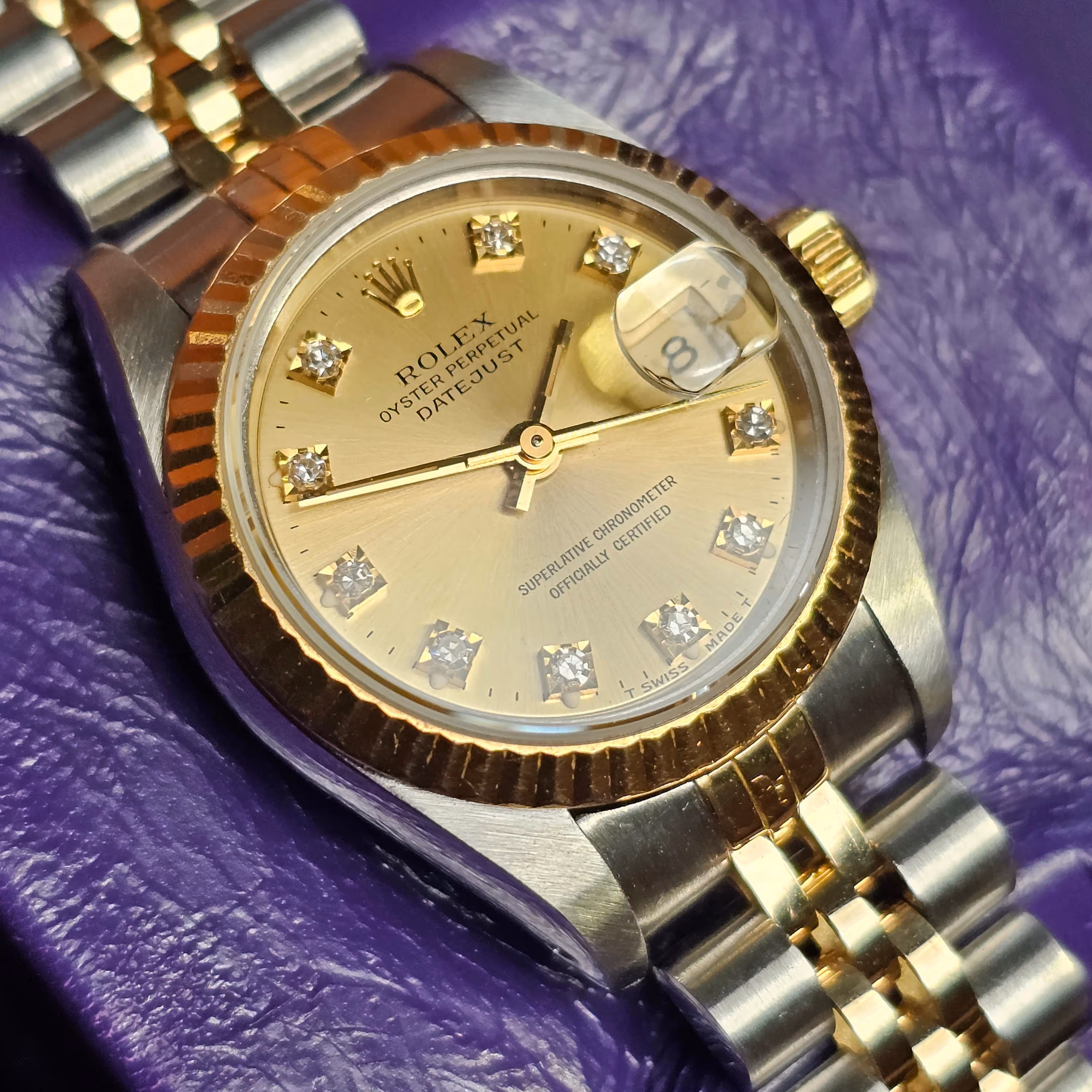 Factory-set diamond hour markers